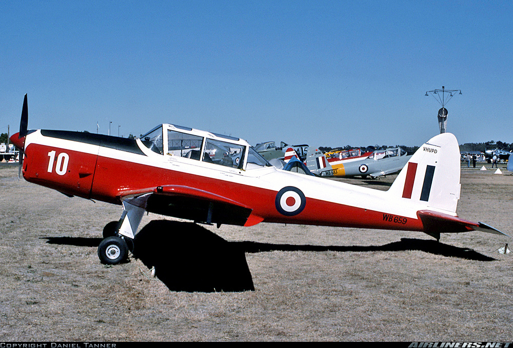 The Chipmunk first registered as WB659 and saw service as a trainer in the RAF, then came to Australia and was initially registered as VH-BAD.