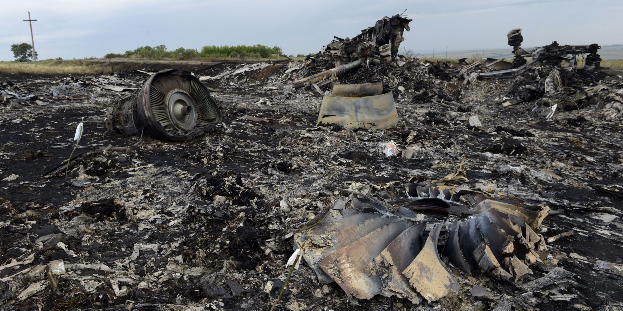 The Boeing 777-200ER, travelling from Amsterdam to Kuala Lumpur but carrying 27 Australian-born passengers, appeared to have broken up before impact and the burning wreckage was scattered over a wide area.