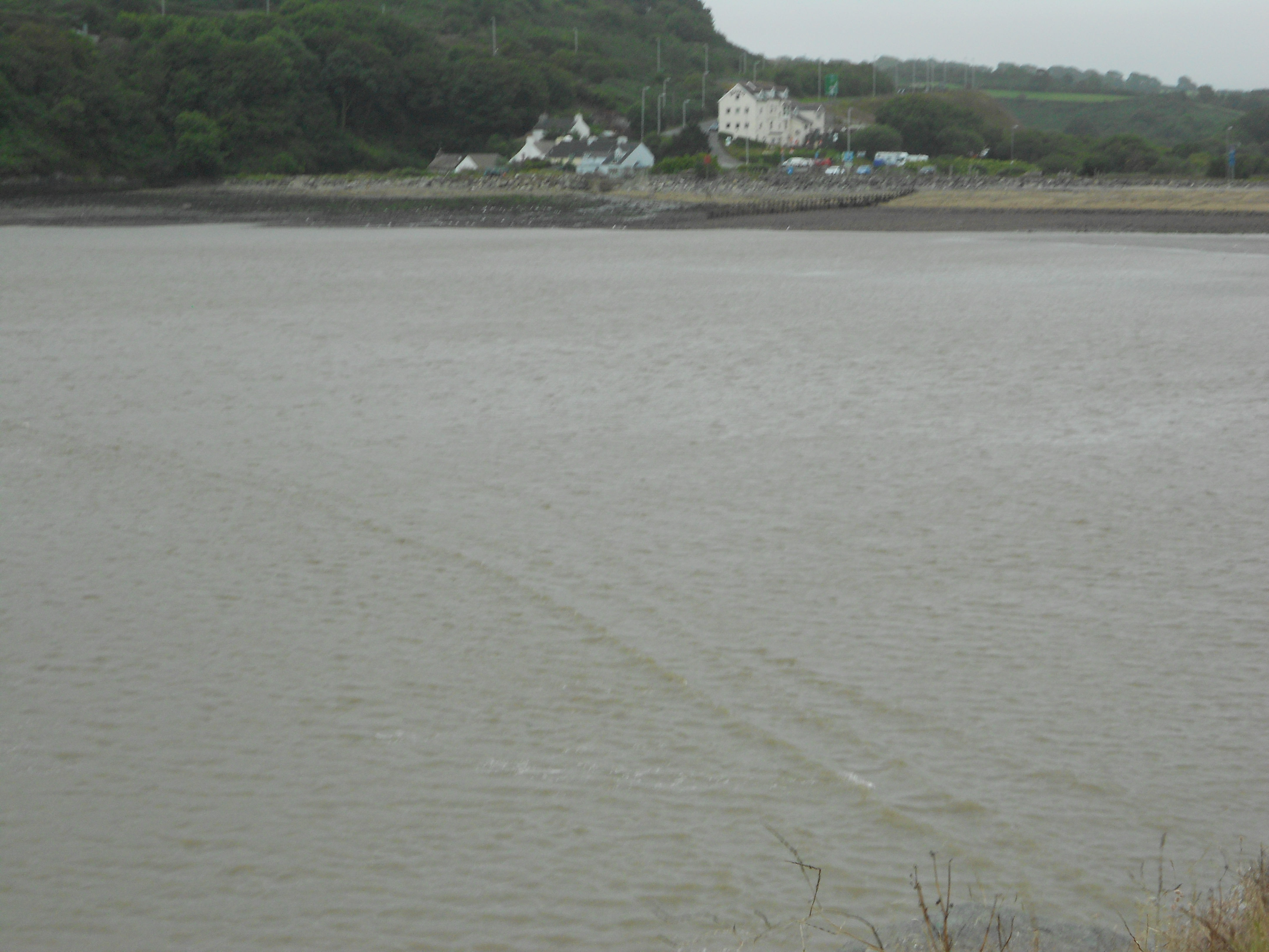 That’s not surf below! That’s the tide running in! It rises 9 foot (3m) in three hours!